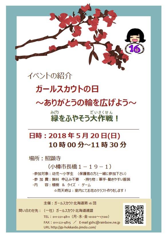 ガールスカウトと一緒に植樹をして、小樽の町に緑をふやしませんか?クイズやゲームもしますよ!