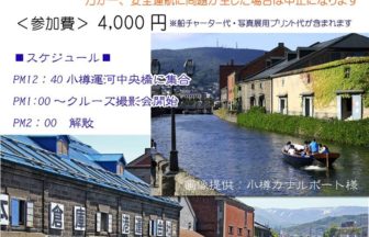 小樽運河をクルーズしながら、撮影を楽しみましょう!!spd詳細を見てみる講座名小樽カナルボートのキャプテンと巡る☆小樽運…