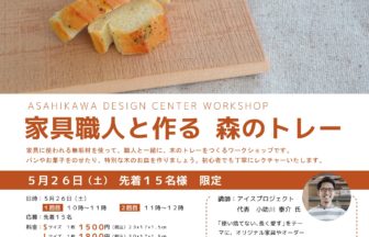 【ASAHIKAWA DESIGN CENTER WORKSHOP】5月26日(土)アイスプロジェクト代表の小助川さんによるワークショップ「家具職人…